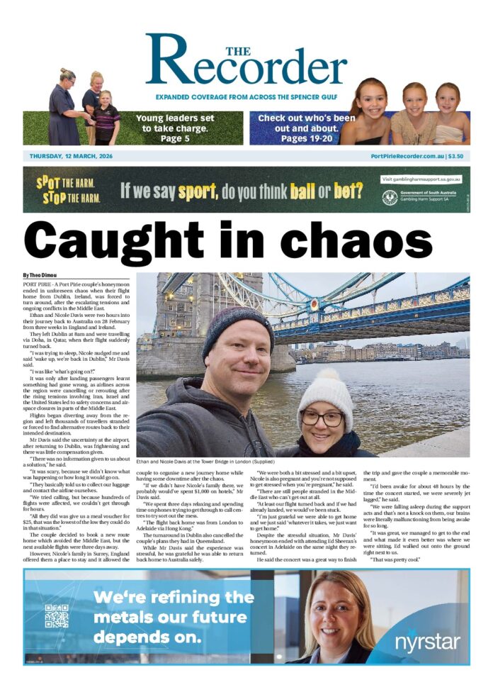 The Recorder – 12th March 2026 Subscribe or Login to see the rest of the content. Username Password * Remember Me Forgot Password News Foreshore fun awaits 29/03/2026 PORT BROUGHTON - A strong mix of local food, live music and community atmosphere will be on show in Port Broughton for Feast on... Submissions open for Country Arts SA award 29/03/2026 Country Arts SA is now accepting submissions for the 2027 Breaking Ground Art Award, open to regional visual artists of all disciplines and at... Track down hidden loos 29/03/2026 Australians are being urged to keep an eye out for one of life’s everyday essentials, with a nationwide call to help uncover hidden public...