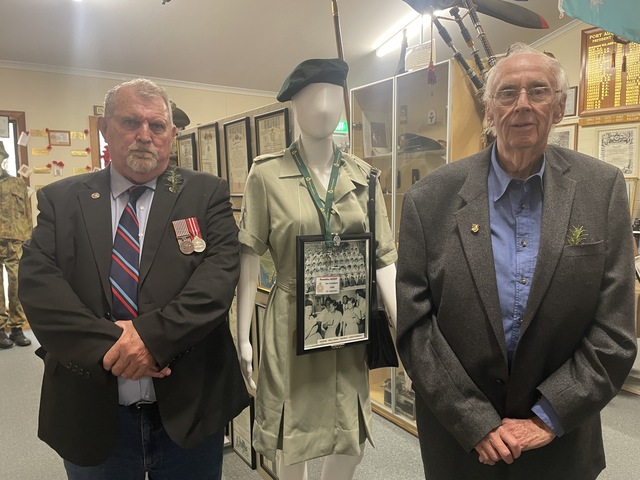 Port Augusta RSL sub branch president Ken Pollock and secretary John Webster in the Port Augusta RSL museum following the Commemorative Service at Gladstone Square in Port Augusta on Anzac Day. (Lachlan Smith)