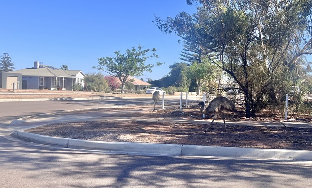 Two emus were spotted wandering along Elliott Street in Whyalla Playford last week. (Jack O'Halloran). 476837_01