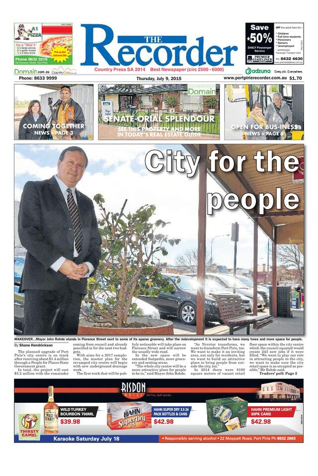 LOOKING BACK: Port Pirie 06/07/2025 FacebookTwitterEmail JULY 9, 2015 CITY FOR THE PEOPLE The planned upgrade of Port Pirie’s city centre is on track after receiving about $1.4 million […] Subscribe or Login to see the rest of the content. Username Password * Remember Me Forgot Password