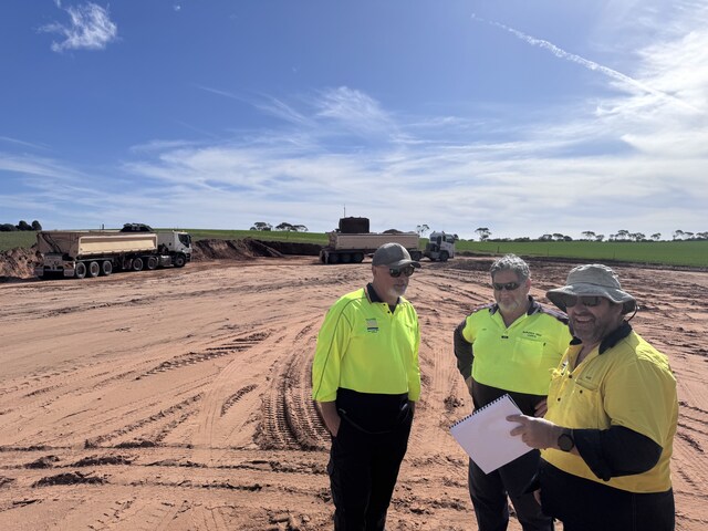 Todd Martin, John Pridham and Marcus Stutley at work in the hornby Road development in Port Broughton (supplied)