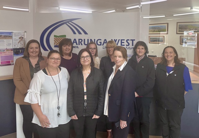 Barunga West CEO Maree Wauchope with council staff, back row from left, Bridget Johns, Carolyn Mildren, Jane Hewett, Tamara Harrison, Sonia Francis and Samantha Harrison. Front, Jacky Ritter, Kelly Glenton and Maree Wauchope (supplied)