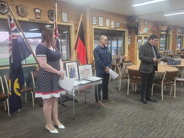 Michaela Burgess and Dylan Kentch with Flinders Ranges Council Mayor Ken Anderson - both were inducted as Australian citizens during a recent ceremony held in Hawker. (supplied)