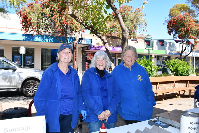 Port Augusta Lions Club members Shirley Giles, Brenda Kay and Maureen Sayer during the event held in conjunction with NAB Bank to raise funds for Lions Roar for Wellbeing Project last week on the Main Street. (Lachlan Smith)