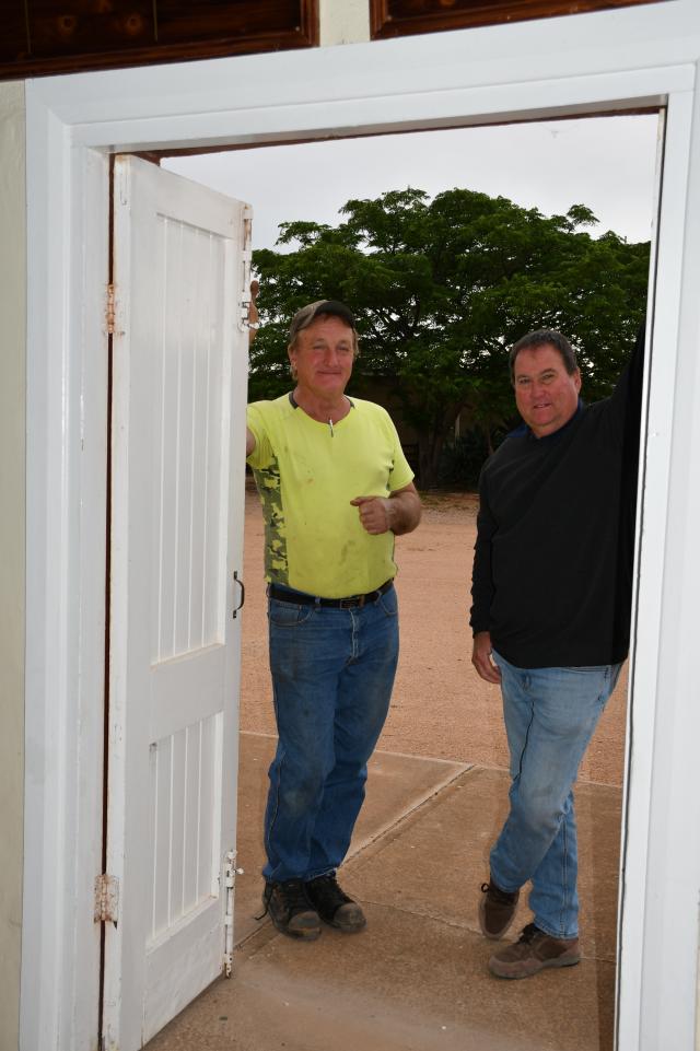 Institute president Brenton Ferme with committee member Brenton Vanstone in the doorway where the new doors will be installed soon (Neralie Bailey: 514094_01)