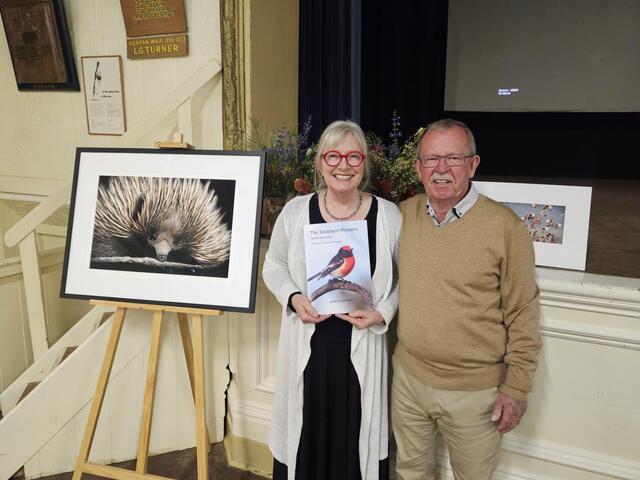 Dr Annette Marner with member for Stuart Geoff Brock at the launch of her new book A Celebration of Wildlife and Landscapes at the Wirrabara Hall. (supplied)